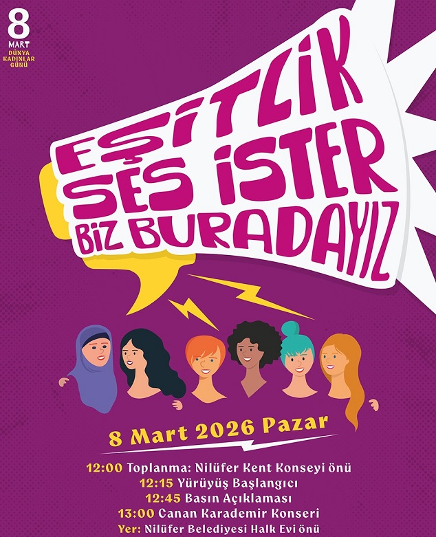 Nilüfer Belediyesi, Nilüfer Kent Konseyi iş birliğiyle 8 Mart Dünya Kadınlar Günü kapsamında kadınların toplumsal hayattaki yerine ve hak taleplerine dikkat çekmek amacıyla kapsamlı bir etkinlik programı düzenliyor. “Eşitlik Ses İster Biz Buradayız” sloganıyla hazırlanan etkinlikler, 2 – 8 Mart tarihleri arasında kentin dört bir yanında Nilüferlilerle buluşacak.