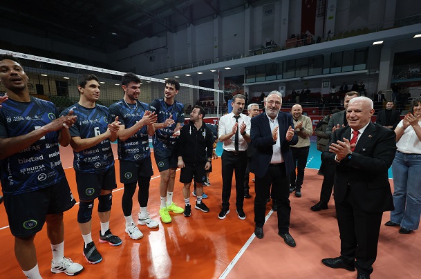 Mücadeleyi tribünden takip eden Bursa Büyükşehir Belediye Başkanı Mustafa Bozbey de maç sonrası sahaya inerek sporcuları tek tek tebrik etti.